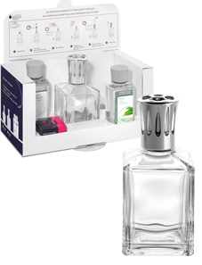 STARTER KITS COME IN a Cube or a Round Lamp - A concentration of purity and simplicity, this is the ideal Lampe Berger introductory boxed set including a clear glass round or cubed shaped lamp, a AIR PUR SYSTEM 3C® catalytic burner, 1 funnel, 1 stopper, an Essential Neutral fragrance 180ml and a Summer rain fragrance. 180ml. Glass - Volume: 225ml